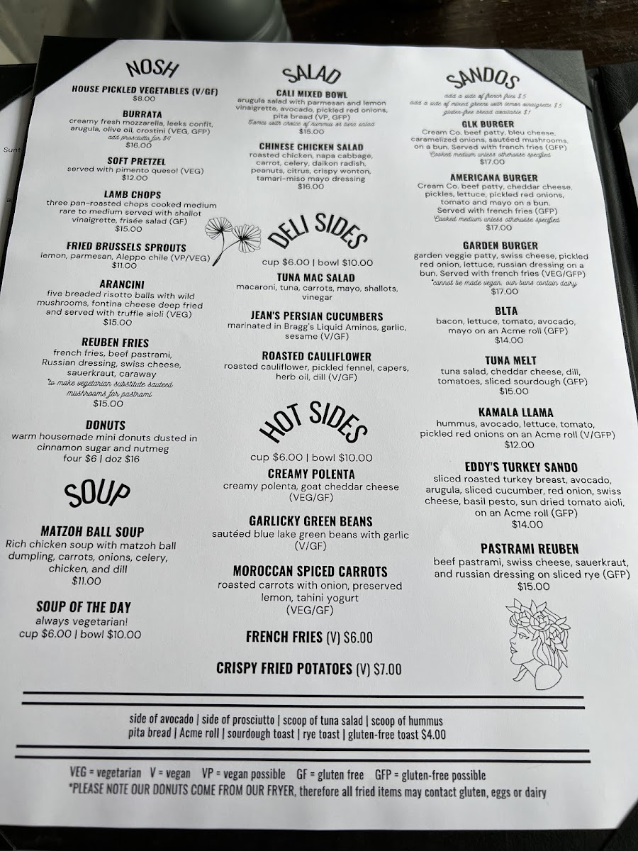 sourdough toast, sliced avocado, two eggs (poached or scrambled), aleppo chili. Served with mixed greens and lemon vinaigrette